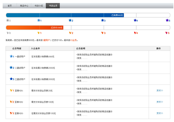 书店可根据需要自行设定等级会员和星级用户规则及相应的优惠方案,读者可以书店会员页面查看相应的规则,在书店消费满足其设定的条件则或者通过支付获得特定的会员等级可自行成为该店的等级会员和星级用户,并享受书店设定的优惠。